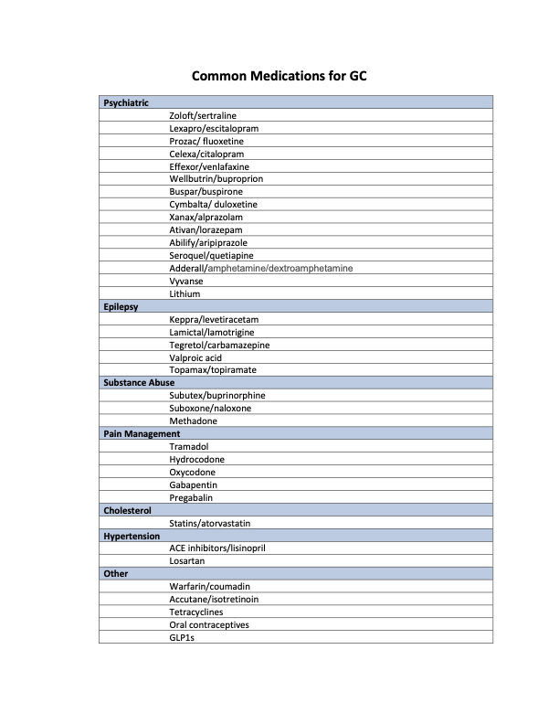 Common Medications for GC